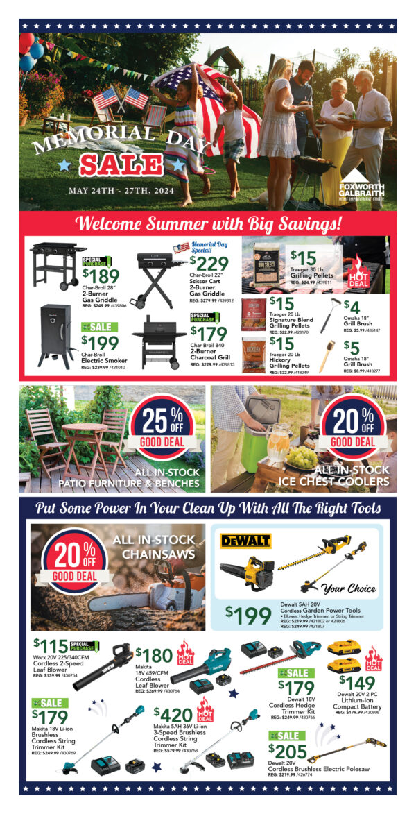 Memorial Day Sale! May 24th, 25th, & 27th, 2024
